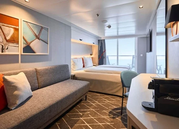 | SSAO - Schöne Aussicht Suite 39 m² + balkón 10-12 m² s ležadlami a hojdacou sieťou. 7-14. paluba. Max 4 osoby. Výhody Suite. | 6 998 € 3 499 € za osobu |