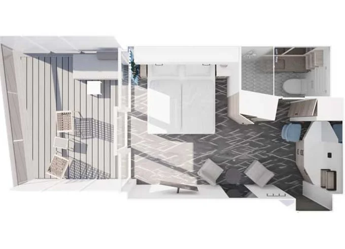 | VEPO - Kajuta s terasou Premium 30 m² + balkón 35 m² so stoličkami, ležadlami a hojdacou sieťou. 15. paluba. Max 2 osoby. | 7 198 € 3 599 € za osobu | ||